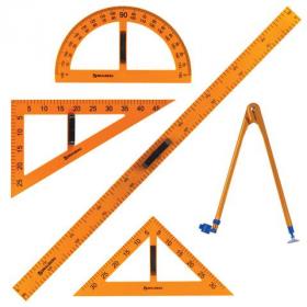 Набор чертежный для классной доски (2 треугольника, транспортир, циркуль, линейка 100 см), BRAUBERG, 210383