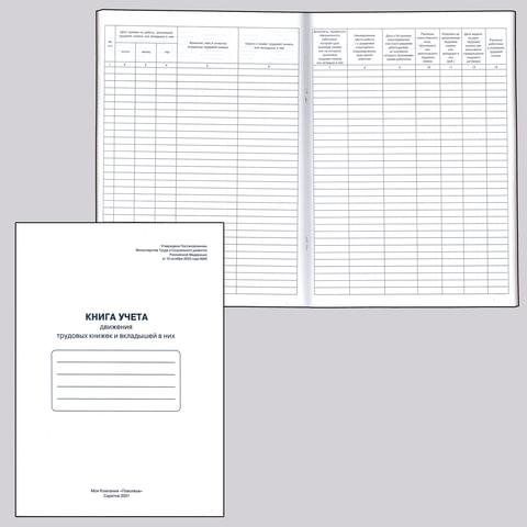 Книга учета движения трудовых книжек и вкладышей к ним, 48 л., картон, блок офсет, А4 210х290 мм, 52277, 130054