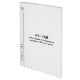 Журнал регистрации инструктажа по технике безопасности, 96 л., картон, типографский блок, А4 200х290 мм, STAFF, 130241
