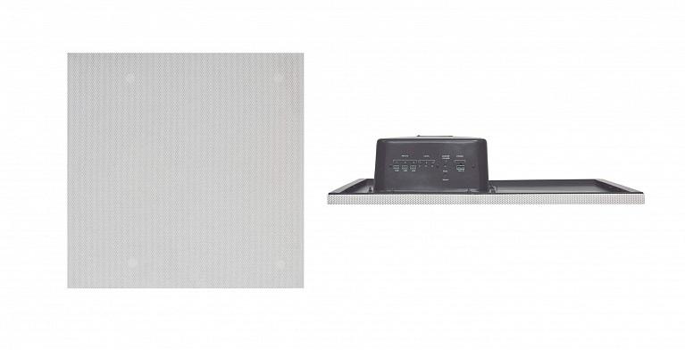 Активный прямоугольный потолочный громкоговоритель Kramer Electronics [TAVOR 8-T] с системой равномерного распределения звука, с трансформатором; моно / стерео, размер целой потолочной панели типа Армстронг, 600х600 мм, усилитель 40 Вт, кевларовый диффузо