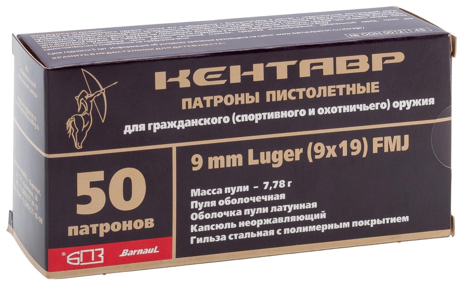 9х19 Люгер БПЗ Кентавр FMJ об 778г полимер