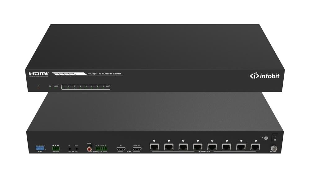 Усилитель - распределитель Infobit [iSwitch 108H150] 1х8 HDBT 4K60 до 150 м.(приемники в комплекте)