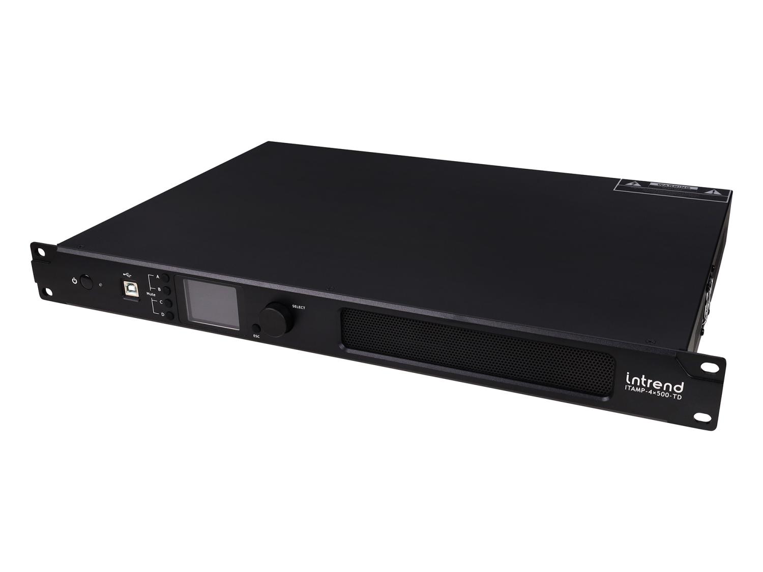 Усилитель Intrend [ITAMP-4x500-TD] четырехканальный, 4x500W / 4Ом, 4x300W / 8Ом, мостовой режим: 2x1000W / 8Ом, 2x1000W / 100V, 2x600W / 70V, поддержка Dante, встроенный DSP
