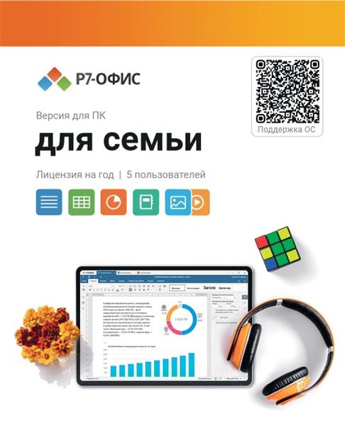 Право на использование программы Р7-Офис Для семьи лицензия на 1 год, на 5 пользователей.
