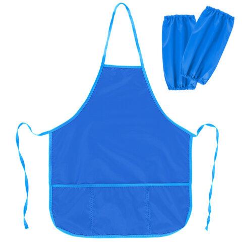 Фартук с нарукавниками для уроков труда ПИФАГОР, 3 кармана, уменьшенный размер, 39х49 см, синий, 273750