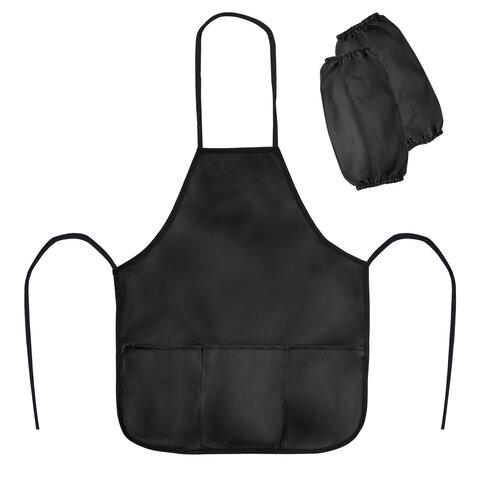 Фартук с нарукавниками для уроков труда ПИФАГОР, 3 кармана, уменьшенный размер, 39х49 см, черный, 273751