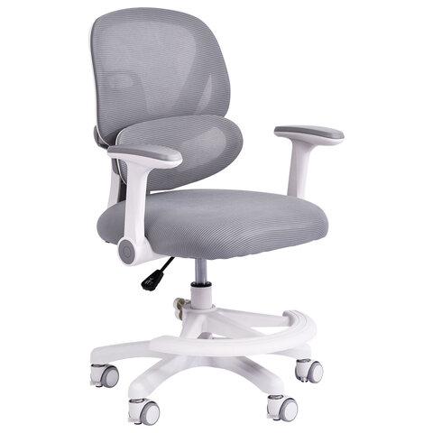 Кресло детское с подставкой для ног BRABIX KIDS MG-220, сетка / ткань TW, серое, 533315