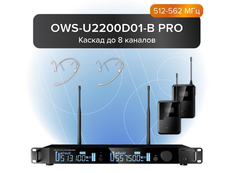 Октава. 2-канальная радиосистема. 2 поясных передатчика и 2 головных микрофона Октава. 2-канальная радиосистема с 2-мя поясными передатчиками OWS-U1200TB и 2-мя головными микрофонами OWS-D01 (диапазон В:512-562 МГц).