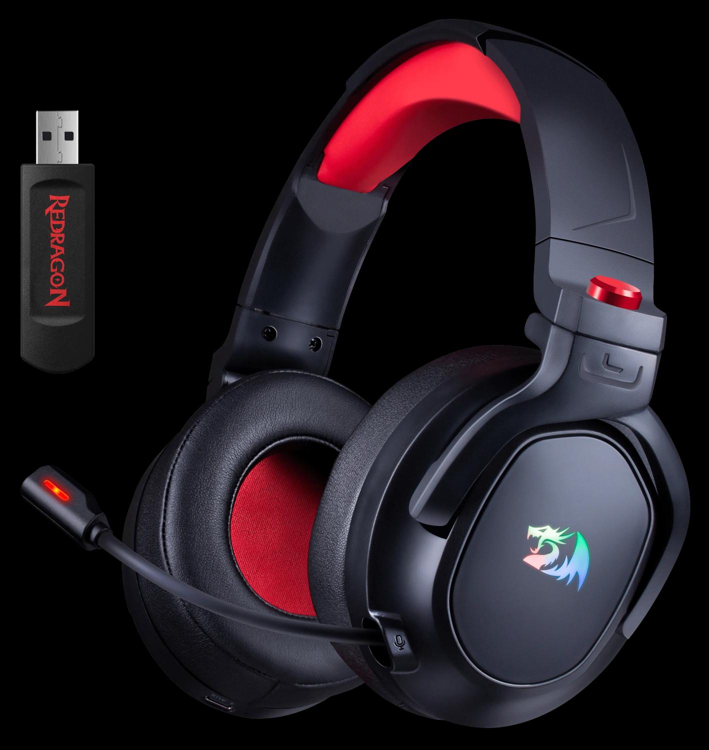 Беспроводная игровая гарнитура REDRAGON NOMEN чёрно-красная (3,5-мм джек, USB, 2.4G, 50 мм, 1000 мАч, RGB подсветка)
