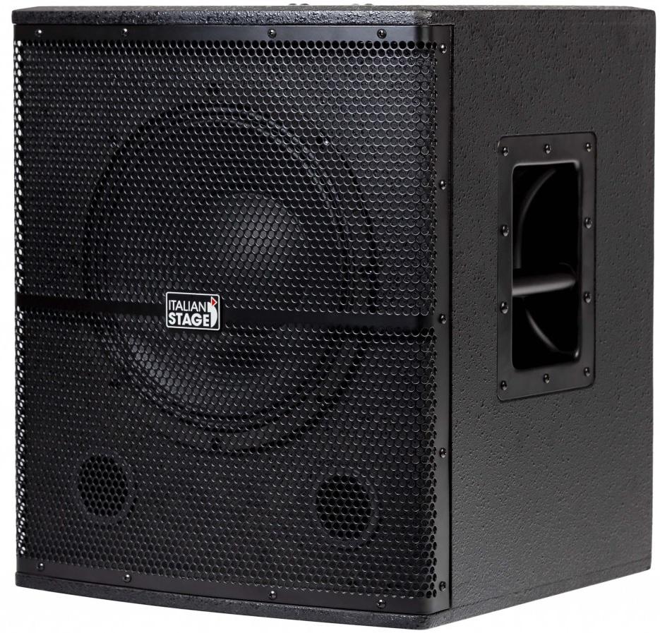 Активный сабвуфер ITALIAN STAGE [S115A] НЧ динамик 15", усилитель класса AB, мощность пик. / ном. 700 / 350 Вт, АЧХ 20-120 Гц, макс. SPL 128 дБ, 2x XLR входа, 2x XLR выхода, регулятор уровня сигнала, переключатели обрезного ФНЧ FLAT / 100 Гц
