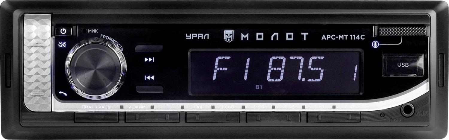 Автомагнитола Ural Молот АРС-МТ 114C 1DIN 4x160Вт v5.0 USB 2.0 AUX 2 (МОЛОТ АРС-МТ 114C)