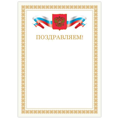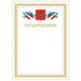 Грамота "Поздравляем", А4, мелованный картон, бронза, бежевая рамка, BRAUBERG, 128365