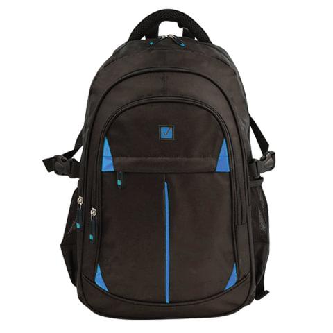 Рюкзак BRAUBERG TITANIUM универсальный, 3 отделения, черный, синие вставки, 45х28х18 см, 224734