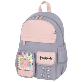 Рюкзак BRAUBERG PASTEL с термонашивками в комплекте, "Sweet paws", серый, 40х29х14 см, 272064