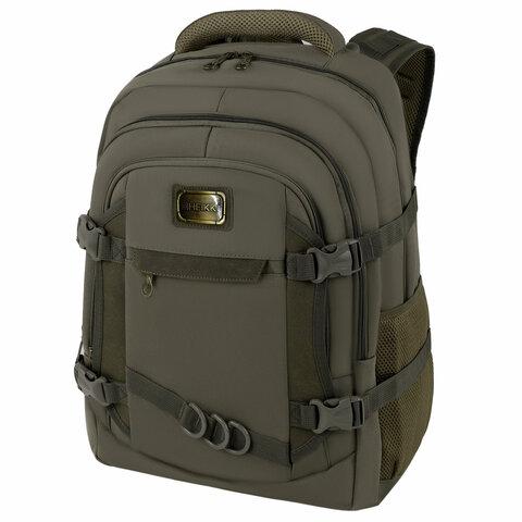 Рюкзак HEIKKI DESERTED (ХЕЙКИ) универсальный, 3 отделения, эргономичный, багажная лента, хаки, 47х33х17 см, 273877