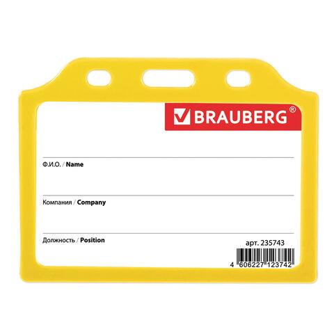 Бейдж горизонтальный жесткокаркасный (55х85 мм), без держателя, ЖЕЛТЫЙ, BRAUBERG, 235743