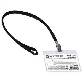 Бейдж горизонтальный (60х90 мм), на черной ленте 45 см, BRAUBERG, 235697