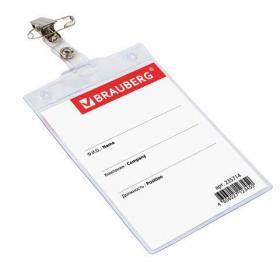 Бейдж горизонтальный (60х90 мм), с клипсой и булавкой, мягкий, BRAUBERG, 235711