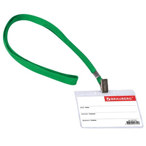Бейдж горизонтальный (60х90 мм), на зеленой ленте 45 см, BRAUBERG, 231153