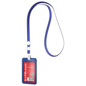 Бейдж горизонтальный ERICH KRAUSE (85х54 мм), корпус синий, цвет ленты синий, 63737