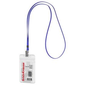 Бейдж вертикальный ERICH KRAUSE (54х85 мм), корпус прозрачный, цвет ленты синий, 63728