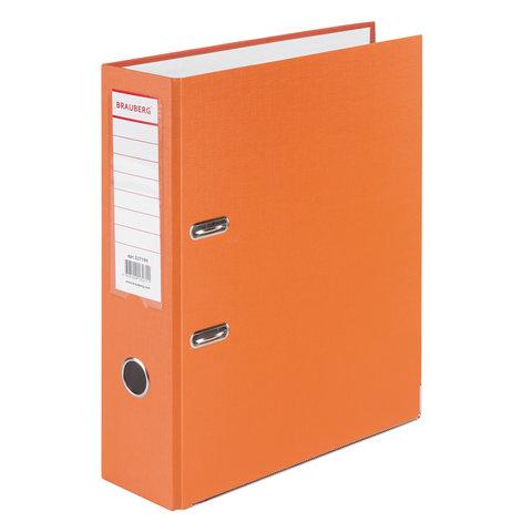 Папка-регистратор BRAUBERG с покрытием из ПВХ, 80 мм, с уголком, оранжевая (удвоенный срок службы), 227199