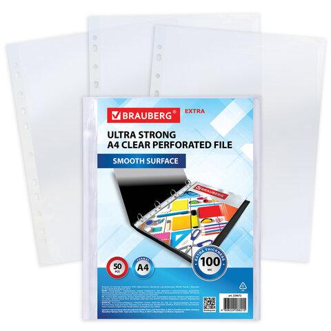 Папки-файлы перфорированные А4 BRAUBERG "EXTRA 1000", КОМПЛЕКТ 50 шт., гладкие, ПЛОТНЫЕ, 100 мкм, 229672
