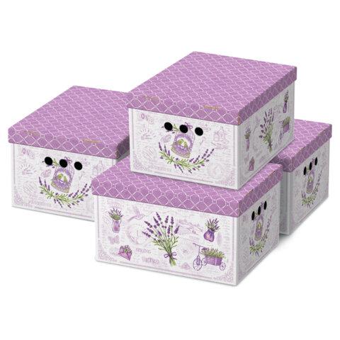 Короб для хранения из плотного микрогофрокартона 330х250х185 мм, КОМПЛЕКТ 4 шт., BRAUBERG HOME "Лаванда", 271813
