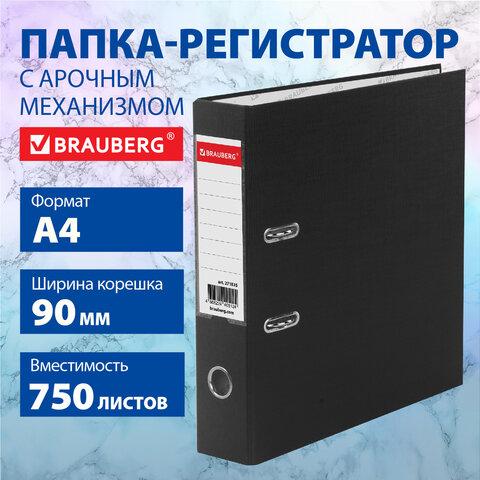 Папка-регистратор ШИРОКИЙ КОРЕШОК 90 мм с покрытием из ПВХ, черная, BRAUBERG, 271835