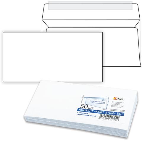 Конверты Е65 (110х220 мм), отрывная лента, белые, КОМПЛЕКТ 50 шт., внутренняя запечатка, Е65.10.50С