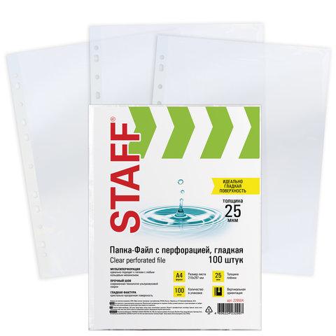 Папки-файлы перфорированные А4 STAFF "ЭКОНОМ", КОМПЛЕКТ 100 шт., гладкие, 25 мкм, 228504