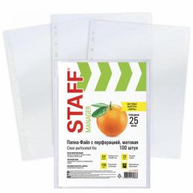 Папки-файлы перфорированные А4 STAFF "ЭКОНОМ", КОМПЛЕКТ 100 шт., матовые, 25 мкм, 226828