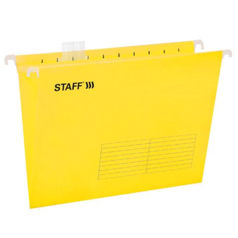 Подвесные папки А4 (350х240 мм) до 80 л., КОМПЛЕКТ 10 шт., желтые, картон, STAFF, 270930