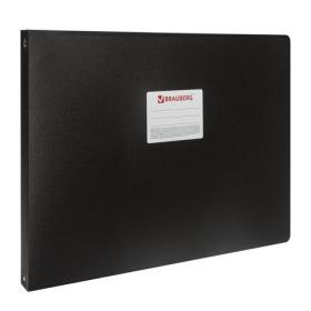 Папка на 4 кольцах БОЛЬШОГО ФОРМАТА А3, ГОРИЗОНТАЛЬНАЯ, 30 мм, черная, 0,8 мм, BRAUBERG "Стандарт", 225768