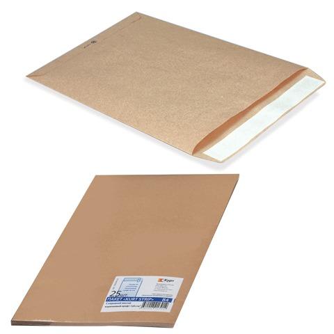 Конверт-пакеты В4 объемный (250х353х40 мм), до 300 листов, крафт-бумага, отрывная полоса, КОМПЛЕКТ 25 шт., 391157.25