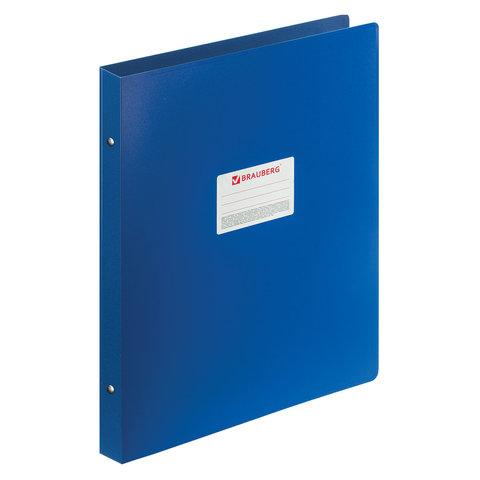 Папка на 2 кольцах, ПРОЧНАЯ, картон / ПВХ, BRAUBERG "Office", СИНЯЯ, 35 мм, до 180 листов, 271843