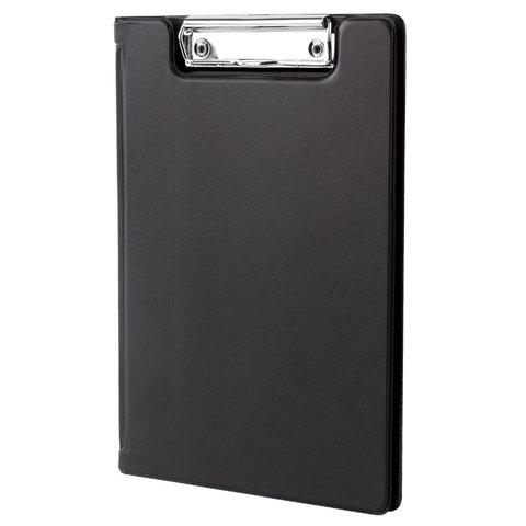 Папка-планшет МАЛЫЙ ФОРМАТ (180х255 мм) А5, BRAUBERG, с прижимом и крышкой, картон / ПВХ, черная, 227980