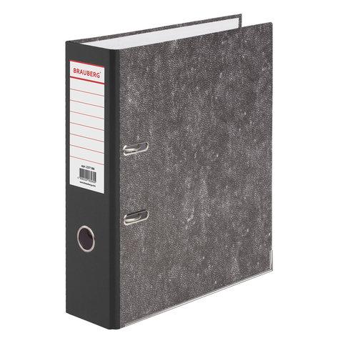 Папка-регистратор BRAUBERG, усиленный корешок, мраморное покрытие, 80 мм, с уголком, черная, 227188
