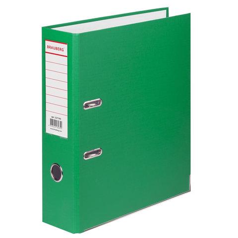 Папка-регистратор BRAUBERG с покрытием из ПВХ, 80 мм, с уголком, зеленая (удвоенный срок службы), 227193