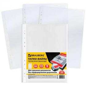 Папки-файлы перфорированные А4 BRAUBERG "PREMIUM", КОМПЛЕКТ 100 шт., матовые, 45 мкм, 221713