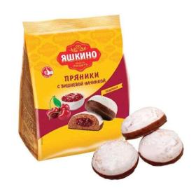 Пряники ЯШКИНО "С вишневой начинкой" мягкие в двойной глазури, 350 г, ЯП906