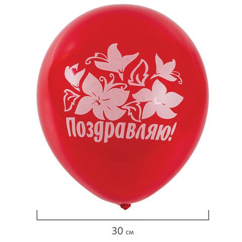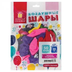 Шары воздушные ЗОЛОТАЯ СКАЗКА, 12" (30 см), КОМПЛЕКТ 50 штук, ассорти 10 цветов, с рисунком "Поздравляю", пакет, 105006