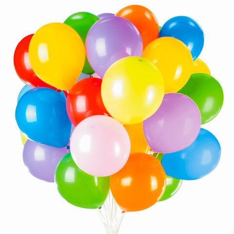 Шары воздушные ЗОЛОТАЯ СКАЗКА, 12" (30 см), КОМПЛЕКТ 50 штук, ассорти 10 цветов, пакет, 105003