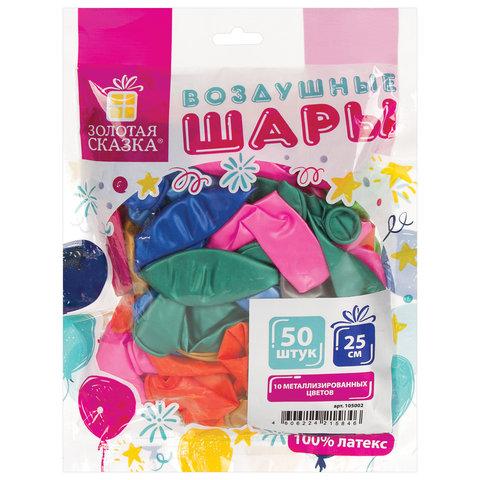Шары воздушные ЗОЛОТАЯ СКАЗКА, 10" (25 см), КОМПЛЕКТ 50 штук, металлик, ассорти 10 цветов, пакет, 105002