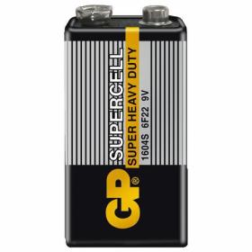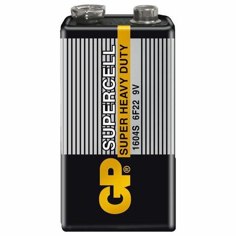 Батарейка 1 шт. GP SuperCell, Крона (6R61, 6F22, 1604S), солевая, в плёнке, 1604S-B