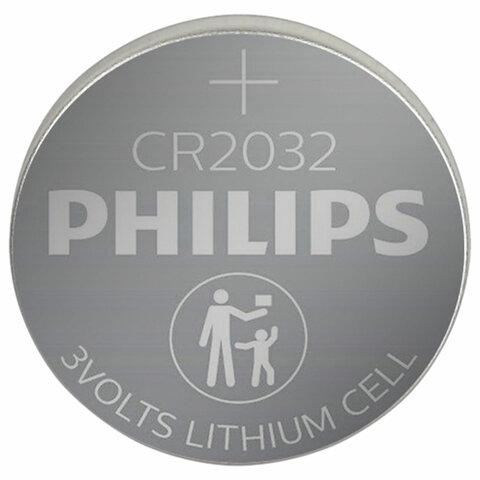 Батарейка литиевая PHILIPS Lithium CR2032, таблетка, дисковая, кнопочная, 1 шт., блистер (отрывной блок), Б0064640