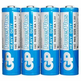 Батарейки КОМПЛЕКТ 4 шт., GP PowerPlus AA (R6, 15G), солевые, пальчиковые, в пленке, 15CEBRA-2S4