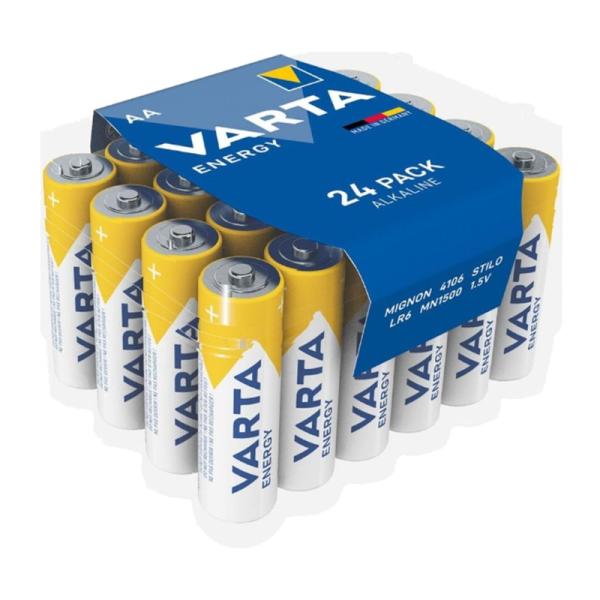 Батарейки алкалиновые "пальчиковые" КОМПЛЕКТ 24 шт., VARTA ENERGY, АА (LR6, 24А), пластиковый бокс, 4106229224
