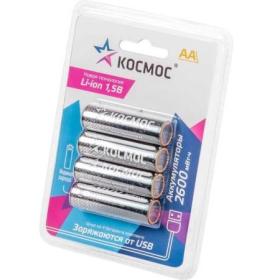 Аккумулятор AA Космос Li-ion 1.5В 1700мА / ч, зарядка от USB, 4шт, блистер (KOCR6Li2600mWh4BL)