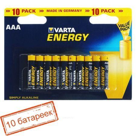 Батарейка AAA VARTA LR03 / 10BL Energy, щелочная, 10 шт, в блистере (4103)